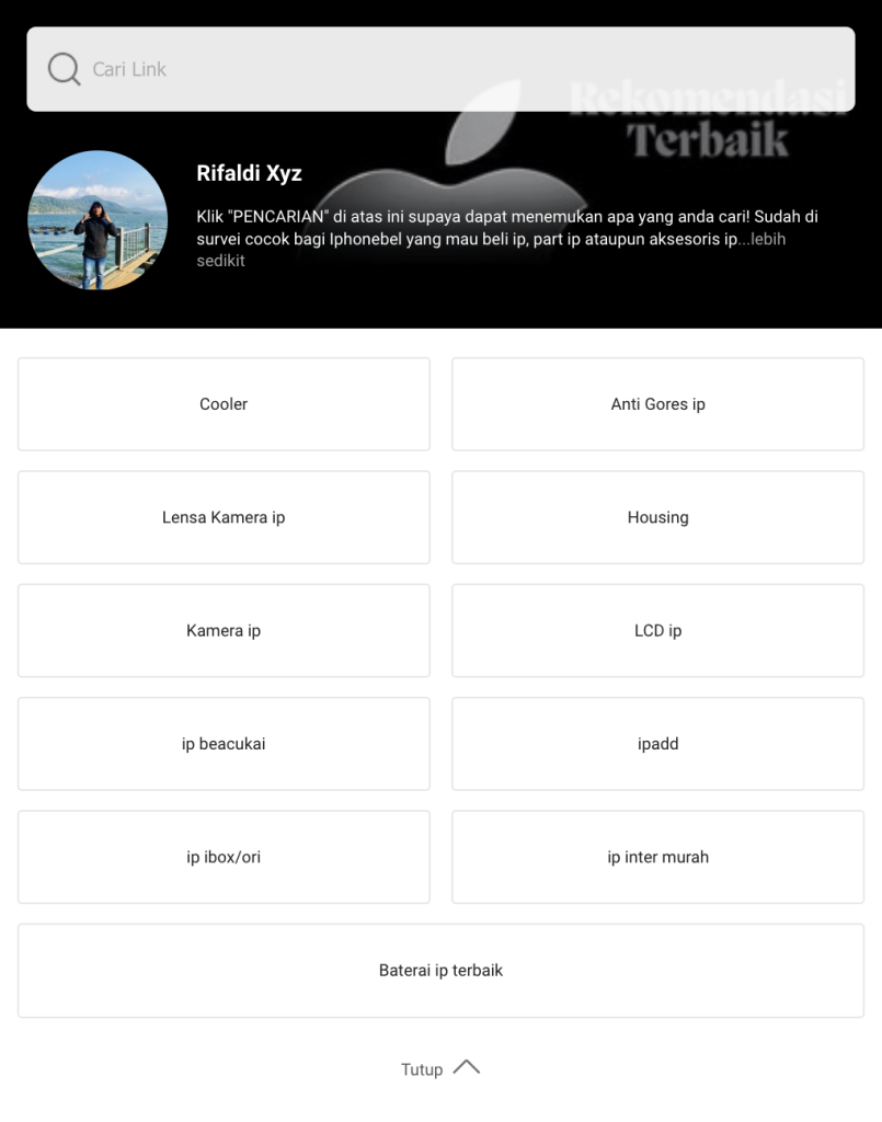 Ingin punya iphone second atau aksesoris iphone tapi bingung tidak bisa cek nya? takut tertipu? takut partnya tidak ori? Rifaldi Xyz menyediakan rekomendasi iphone terbaik di shopee sudah survai sehingga tidak perlu diragukan lagi!